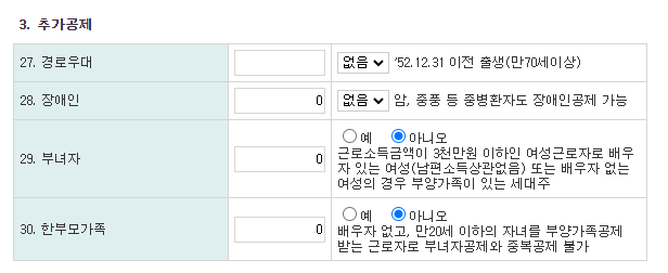 (7) 그 밖의 소득공제 금액을 넣는다.