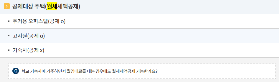 학교 기숙사에 거주하면서 월임대료를 내는 경우에도 월세세액공제 가능한가요?
