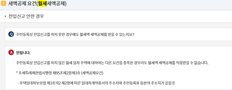 전입신고 안한경우 월세 공제