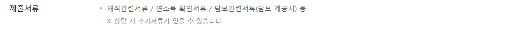 재직관련서류 / 연소득 확인서류 / 담보관련서류(담보 제공시)