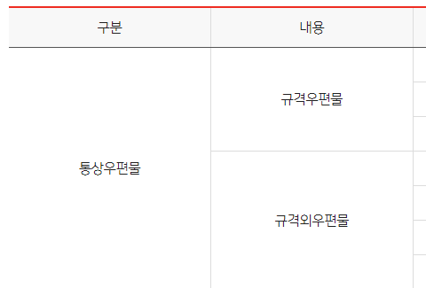 구분 내용 중량 보통우편요금