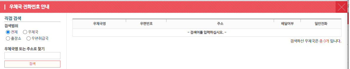 찾으시는 우체국이 없을 경우 우편고객센터 1588-1300