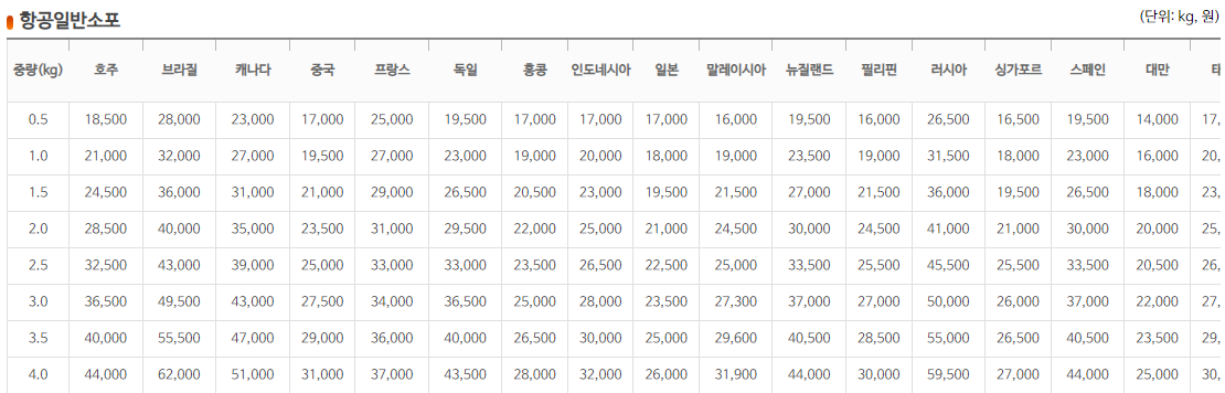 (1) 국제택배 요금표