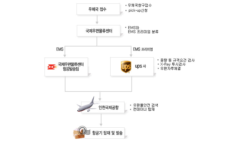참고로 EMS의 경우 다음과 같이 서비스가 진행되오니 업무에 참고하시기 바랍니다.