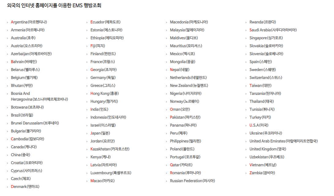 미국 일본 등 주요 선진국으로 발송한 EMS의 배달 여부를 인터넷을 통하여 직접 확인가능합니다.