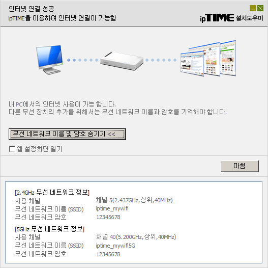 ipTIME 공유기의 모든 설치과정이 완료 되었습니다.