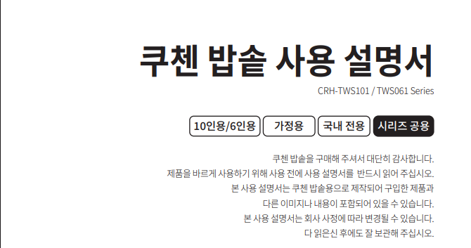오늘은 쿠첸 압력밥솥 사용설명서에 대해서