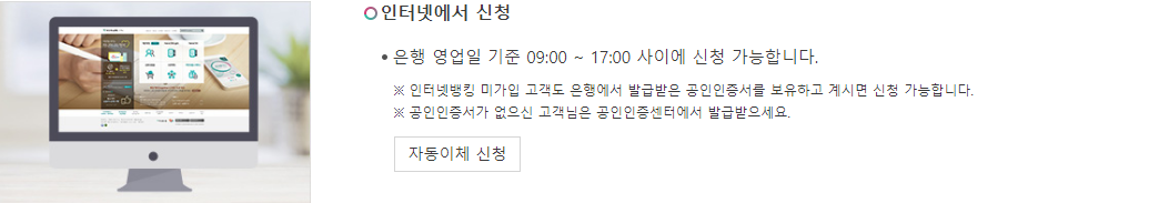 ※ 인터넷뱅킹 미가입 고객도 은행에서 발급받은 공인인증서를 보유하고 계시면 신청 가능합니다.