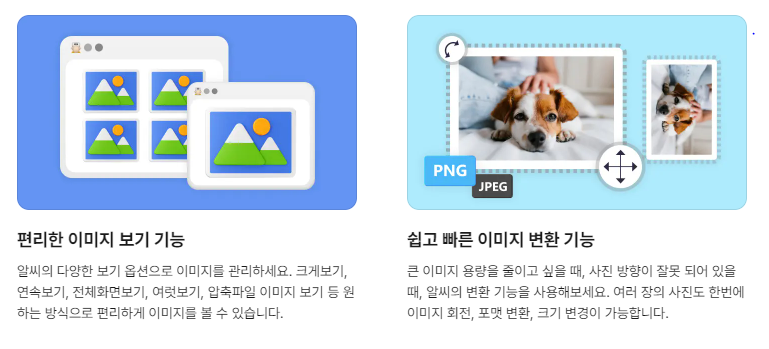 알씨는 사진 편집, 포맷 변환, 캐드뷰어 등 편리한 이미지 보기 기능을 제공하는 이미지 뷰어 프로그램입니다