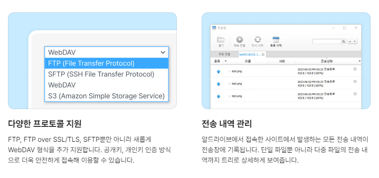 FTP, SFTP, WebDAV 등 다양한 프로토콜에