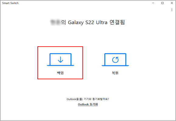 ① 데이터를 백업할 제품을 연결 후 백업 선택