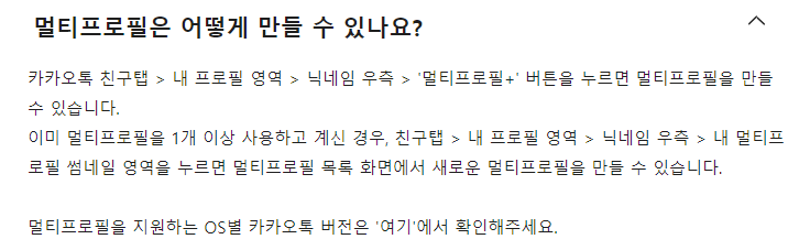 멀티프로필을 지원하는 OS별 카카오톡 버전은 '여기'에서 확인해주세요.