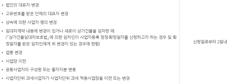 그리고 생각보다 사업자등록 정정사유 무척이나 간단한데요.