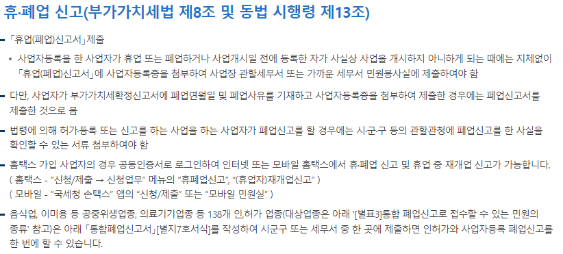 사업자등록 휴업 폐업 안내 | 사업자등록 휴업 폐업 쉽게 하는 방법 | 어떻게 해야 하나요
