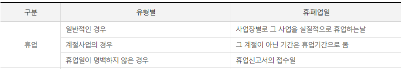 휴업 폐업일 기준은 어떻게 될까요?