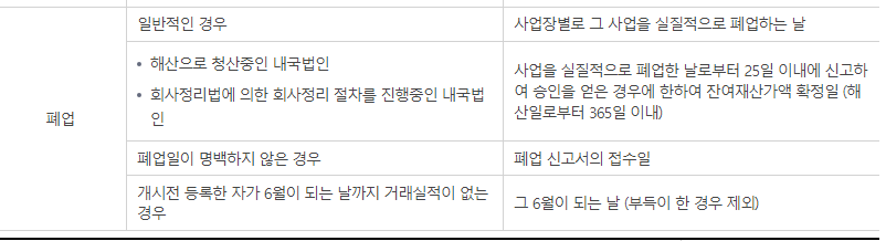 휴업 폐업일 기준