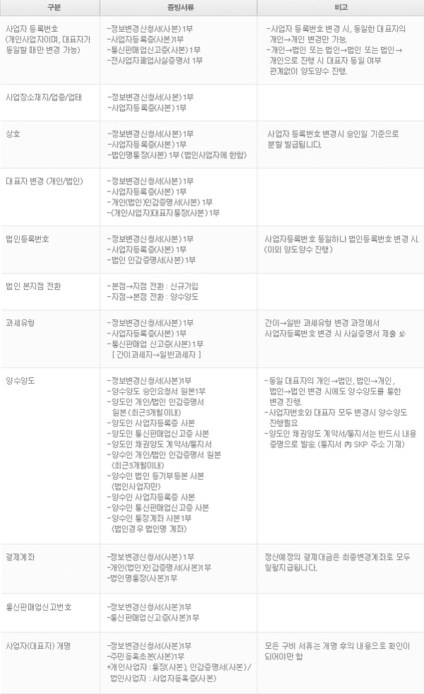 ◈ 서류증빙이 필요한 판매자 중요사항 정보변경
