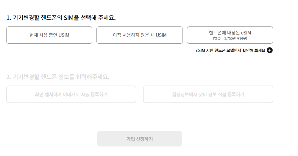 본인은 KT 외 유통망(자급제, 해외 구매 등)에서 구매한 핸드폰으로 요고 요금제 변경을 위해