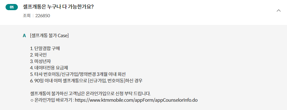KT M모바일 셀프개통 불가한 경우