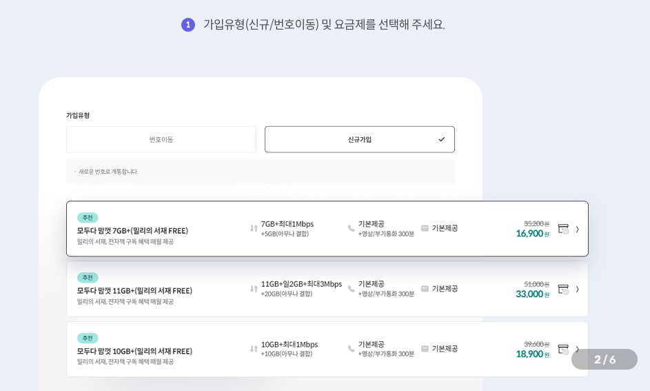 2. 가입유형 '번호이동' or '신규가입' 선택