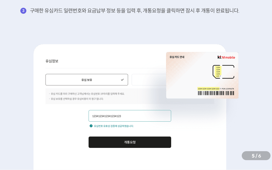 (3) 유심카드 일련번호 확인 및 개통요청 실시