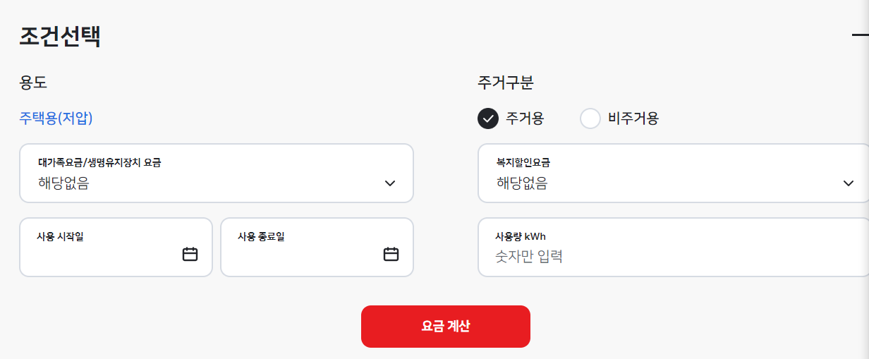 계약종별로 전기요금을 계산할 수 있습니다.