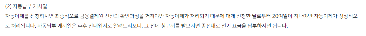 - 이사를 할 경우는 한전고객센터에 전화(국번없이 123번)하여 기존 장소에서의 자동납부 중지신청 및