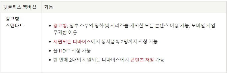 넷플릭스 멤버십별 혜택