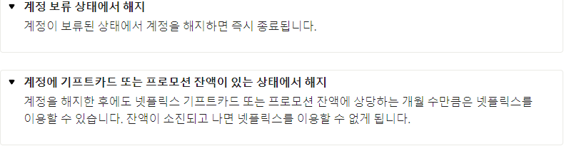 계정을 해지한 후에도 넷플릭스 기프트카드 또는 프로모션 잔액에 상당하는