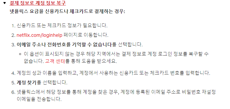 이 옵션이 표시되지 않는 경우 해당 지역에서는 결제 정보로 계정 로그인 정보를 복구할 수 없습니다. 고객 센터를 통해 도움을 받으세요.