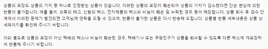 이와 별도로 상품의 포장이 아닌 택배의 박스나 비닐이 훼손된 경우,