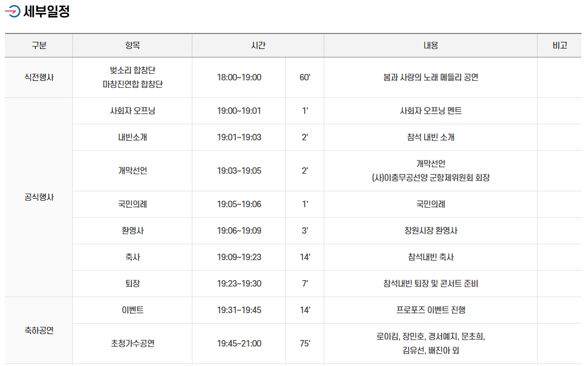 오늘은 진해 군항제 프로그램에 대해서