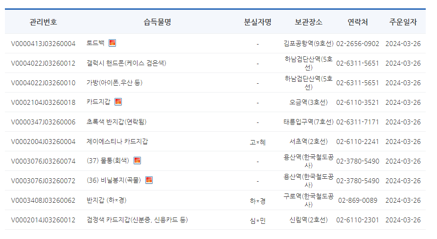 주인을 찾아요!(습득물) > 습득물 목록 조회 | 경찰청 유실물 종합관리시스템