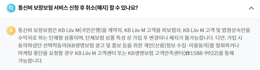 자세한 사항은 KB Liiv M 고객센터 1522-9999(유료), 114(무료) 또는 KB생명보험