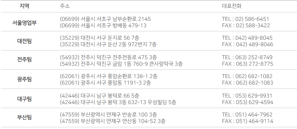 대화제약 팀별 전화번호는 다음과 같습니다.