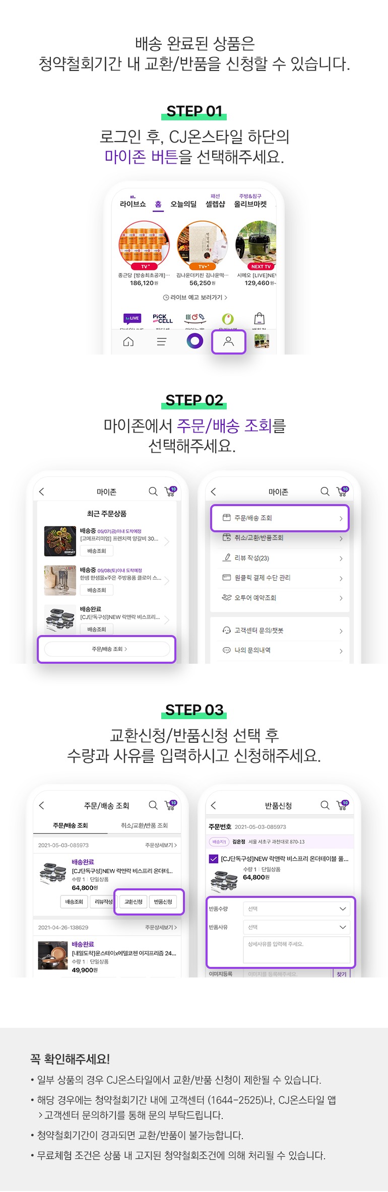 CJ온스타일 반품신청방법은 다음과 같습니다.